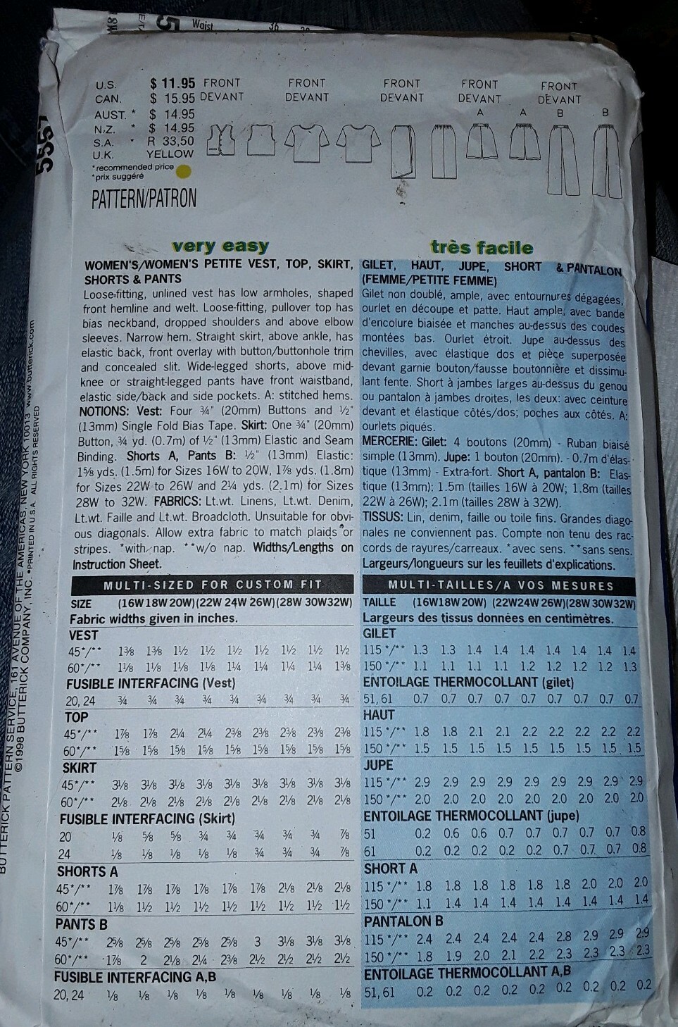 Butterick 5557 Size 16w 20w Women S Women S Petite Vest Top Skirt Shorts Pants 31664275879 Ebay
